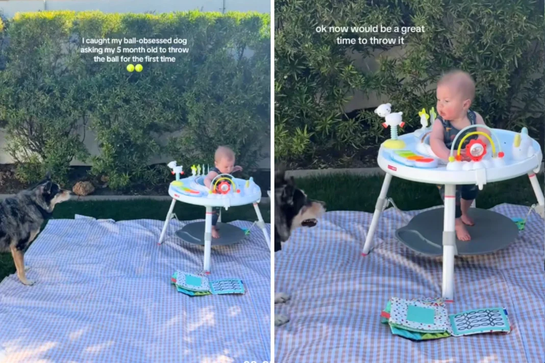 It was a warm summer afternoon when the mother first noticed something extraordinary. Her young baby was playing in the backyard with their new dog, a border collie-cattle dog mix. The two seemed to have formed an instant bond, playing together with a ball. But what caught the mother’s attention was when the dog began to ask the baby to throw the ball. This was the first time she had ever seen the dog interact with the baby in such a way, and it left her feeling amazed and touched.