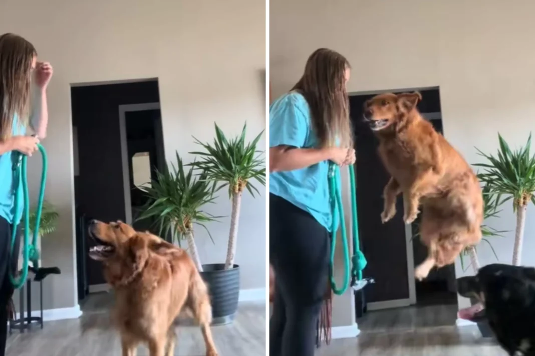 Captain’s owner, Sarah, started sharing videos of him on social media a few months ago, and they quickly went viral. In the videos, Captain can be seen eagerly waiting for his favorite time of the day, which is when Sarah comes home from work. As soon as she enters the house, Captain’s excitement knows no bounds. He jumps, barks, and wags his tail uncontrollably, showing his love and happiness at seeing his owner.